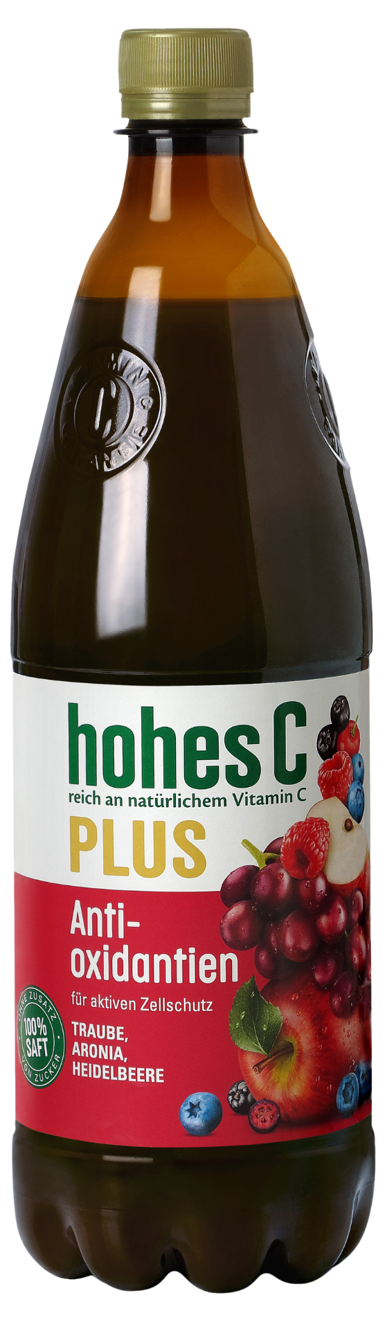 Kuna soovime teile pakkuda päeva alustamiseks parimat starti, siis pakume hohes C PLUS Antioxidantien’i näol looduslike antioksüdantide C- ja E-vitamiini poolest rikkalikku mahla. Need antioksüdandid aitavad aktiivselt kaasa rakkude kaitsmisele oksüdatiivse stressi eest ning kaitsevad meie keha. Kõigile, kes soovivad oma tervisele veidi head teha: hohes C PLUS. hohes C PLUS aitab loomulikul ja hõrgutaval viisil kaasa sellele, et iga päev toimuks midagi inimese heaolu nimel - lihtsalt juues 100%-list mahla. Tänu kokku seitsmele hoolikalt erinevate vajadustega kohandatud puuviljakombinatsioonile annab hohes C PLUS toitaineid, mis on olulised tervisliku ja tasakaalustatud eluviisi jaoks. Nagu kõik meie mahlad on ka mahla hohes C PLUS sordid rikkad C-vitamiini poolest, mis aitab kaasa immuunsussüsteemi stabiilsele toimimisele. Ainuüksi üks klaasitäis hohes C PLUS (0,25 l) mahla katab C-vitamiini päevavajaduse ja annab 1/3 sisalduvate toitainete päevaannusest. C-vitamiin aitab kaasa immuunsussüsteemi normaalsele toimimisele. Jooge hohes C PLUS mahla kui ideaalset täiendust tasakaalustatud toitumisviisi ja tervisliku eluviisi tagamisele. Meie PLUS mahlad on muide kõik ka vegantoidud.