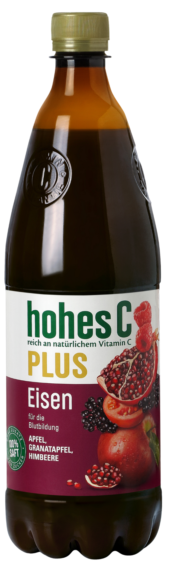 Kuna soovime pakkuda teile päeva alustamiseks parimat jooki, siis pakume teile hohes C PLUS Raudi näol looduslikku ja maitsvat mahla, mis rahuldab tervislikul viisil teie igapäevase rauavajaduse. Raud aitab kaasa punaste vereliblede ja hemoglobiini normaalsele moodustumisele ning vähendab väsimust. õigile, kes soovivad oma tervisele veidi head teha: hohes C PLUS. hohes C PLUS aitab loomulikul ja hõrgutaval viisil kaasa sellele, et iga päev toimuks midagi inimese heaolu nimel - lihtsalt juues 100%-list mahla. Tänu kokku seitsmele hoolikalt erinevate vajadustega kohandatud puuviljakombinatsioonile annab hohes C PLUS toitaineid, mis on olulised tervisliku ja tasakaalustatud eluviisi jaoks. Nagu kõik meie mahlad on ka mahla hohes C PLUS sordid rikkad C-vitamiini poolest, mis aitab kaasa immuunsussüsteemi stabiilsele toimimisele. Ainuüksi üks klaasitäis hohes C PLUS (0,25 l) mahla katab C-vitamiini päevavajaduse ja annab 1/3 sisalduvate toitainete päevaannusest. C-vitamiin aitab kaasa immuunsussüsteemi normaalsele toimimisele. Jooge hohes C PLUS mahla kui ideaalset täiendust tasakaalustatud toitumisviisi ja tervisliku eluviisi tagamisele. Meie PLUS mahlad on muide kõik ka vegantoidud.
